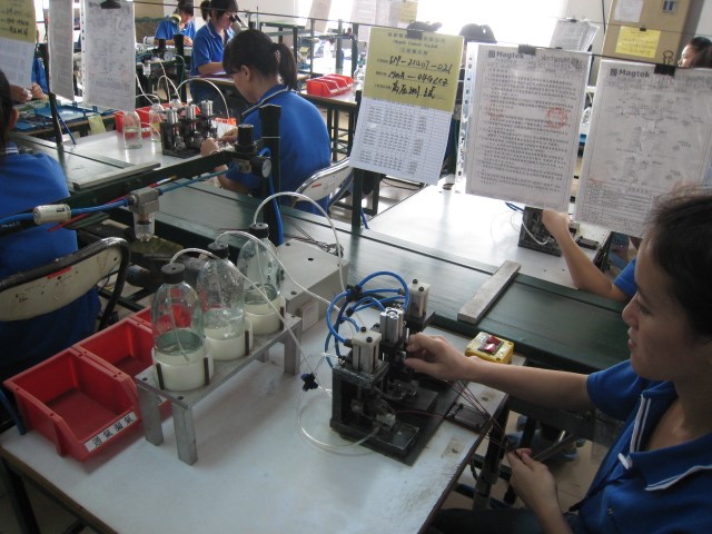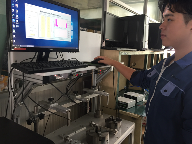 所有電磁閥於產品完成相關組裝後,相關功能性測試包括流量、內部洩漏、外部洩漏、啟動電壓...等,均納入製程全檢測試。